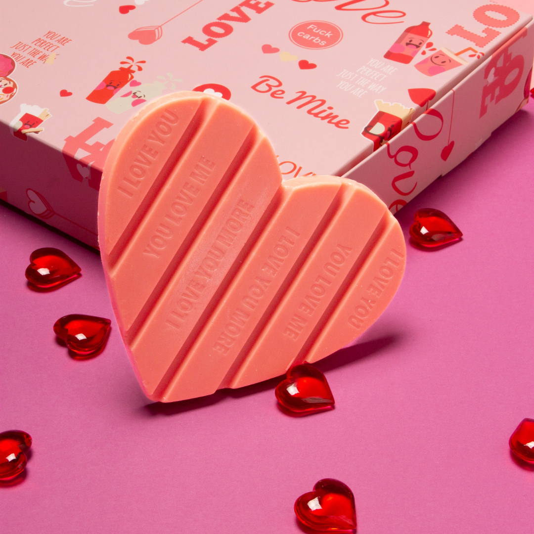 1. CHOCOLATE BLANCO EN FORMA DE CORAZÓN, de edición limitada, totalmente sabroso, keto, sugar free, low carb, sin gluten y orgánico.